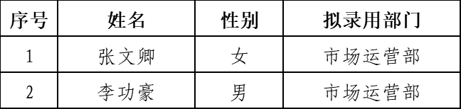 根据工作要求,为加强招聘工作的社会监督,现将我公司校园招聘拟录用人选予以公示。公示时间为2023年7月7日-2023年7月14日。